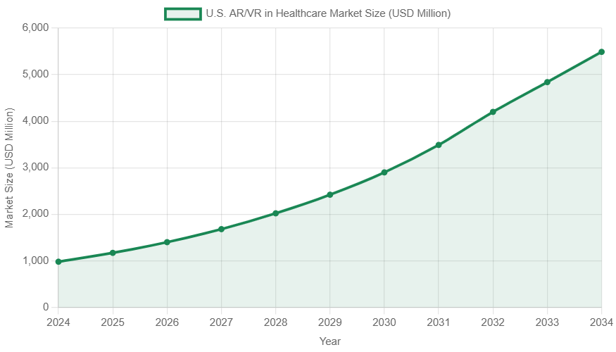 Projected growth of the global AR/VR in healthcare market, demonstrating rapid adoption. Data source: Precedence Research.