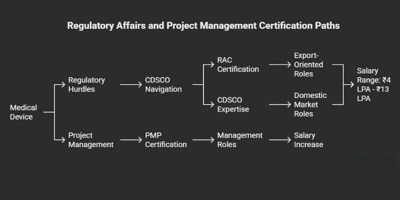 • Global & Local Opportunities: Global certifications (PMP, CQE) open doors to MNCs in India and abroad, while local expertise (CDSCO) is key for domestic roles.