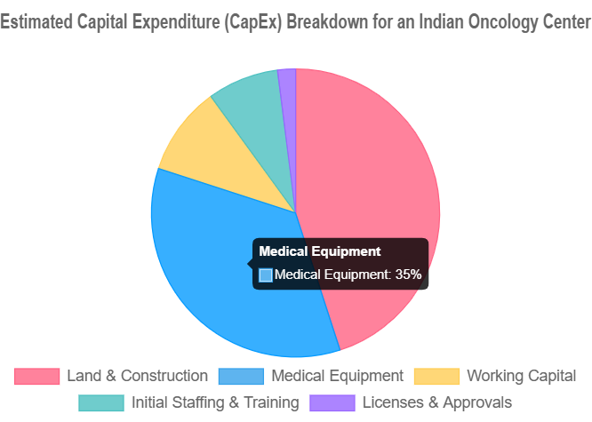 | Medical Equipment | ₹15 Cr – ₹60+ Cr | A single Linear Accelerator (LINAC) for radiation can cost ₹15-25 Cr. A PET-CT scanner costs ₹8-12 Cr, and an MRI ₹5-10 Cr. Costs can be influenced by “Make in India” options and import tariffs . |